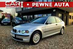 BMW E46 lift Compact z 2003 roku w bardzo dobrym stanie. Silnik benzynowy 2.0 143KM. Oryginalny, potwierdzony przebieg. Technicznie i wizualnie w perfekcyjnym stanie. Wnętrze ładne, zadbane. Silnik, skrzynia biegów i inne podzespoły pracują bez zarzutu. Klimatyzacja sprawna. Dobra wersja wyposażenia. Navi, Xenon. Dodatkowo drugi komplet opon z alufelgami. GWARANCJA PRZEBIEGU. BMW opłacona, gotowa do jazdy. Wystawiamy fakturę vat marża=kupujący zwolniony z opłaty skarbowej. Możliwość dowozu do klienta. Możliwość kredytowania. AUTO JUŻ ZAREJESTROWANE W POLSCE, MOŻNA WRACAĆ NA KOŁACH DO DOMU!